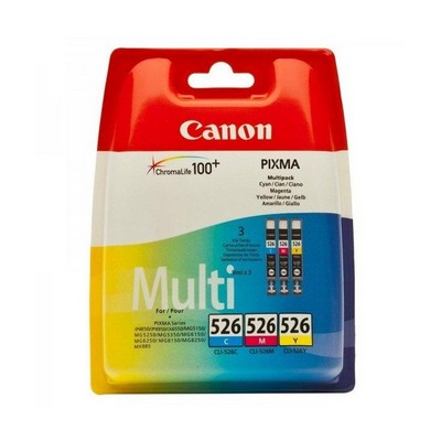 Cartuccia Canon 4541B012 Multipack CLI-526 CMY (Conf. da 3 pz.) originale COLORE da 9×3 ml. Compatibile con le seguenti stampanti: Canon PIXMA IP4850, Canon PIXMA MG5150, Canon PIXMA MG5250, Canon PIXMA MG8150