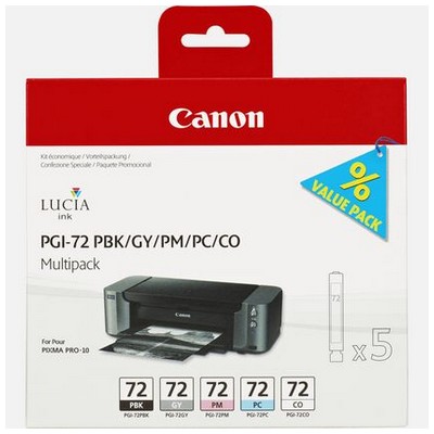 Cartuccia Canon 6403B007 Multipack PGI-72 PBK/GY/PM/PC/CO (Conf. da 5 pz.) originale NERO FOTOGRAFICO + COLORE FOTOGRAFICO da 14 ml. Compatibile con le seguenti stampanti: Canon PIXMA PRO-10