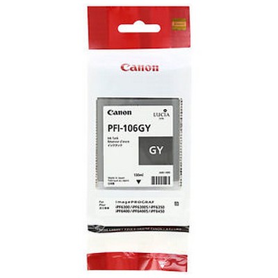Etichette 6630B001AA, Canon IMAGEPROGRAF IPF6300S, Canon IMAGEPROGRAF IPF6350, Canon IMAGEPROGRAF IPF6400, Canon IMAGEPROGRAF IPF6400S, Canon IMAGEPROGRAF IPF6400SE, Canon IMAGEPROGRAF IPF6450, Cartucce Canon, Cartuccia Canon 6630B001AA PFI-106GY originale GRIGIO, cartuccia canon 6630b001aa pfi-106gy originale grigio da 130 ml. compatibile con le seguenti stampanti: canon imageprograf ipf6300