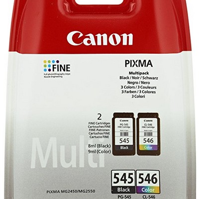 Cartuccia Canon 8287B006 Multipack PG-545 / CL-546 (Conf. da 2 pz.) originale NERO + COLORE da 180×2 pagine. Compatibile con le seguenti stampanti: Canon PIXMA IP2850, Canon PIXMA MG2450, Canon PIXMA MG2500 SERIES, Canon PIXMA MG2550, Canon PIXMA MG2555S, Canon PIXMA MG2950, Canon PIXMA MG2951, Canon PIXMA MG3000, Canon PIXMA MG3050, Canon PIXMA MG3051, Canon PIXMA MX490, Canon PIXMA MX495, Canon PIXMA TR4550, Canon PIXMA TR4551, Canon PIXMA TR4650, Canon PIXMA TR4651, Canon PIXMA TS205, Canon PIXMA TS305, Canon PIXMA TS3100, Canon PIXMA TS3150, Canon PIXMA TS3151, Canon PIXMA TS3350, Canon PIXMA TS3351, Canon PIXMA TS3352, Canon PIXMA TS3450, Canon PIXMA TS3451, Canon PIXMA TS3452