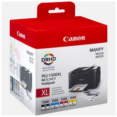 Cartuccia Canon 9182B004 Multipack PGI-1500XL (Conf. da 4 pz.) originale NERO + COLORE da 935×4 pagine. Compatibile con le seguenti stampanti: Canon MAXIFY MB2050, Canon MAXIFY MB2150, Canon MAXIFY MB2155, Canon MAXIFY MB2300 SERIES, Canon MAXIFY MB2350, Canon MAXIFY MB2750, Canon MAXIFY MB2755