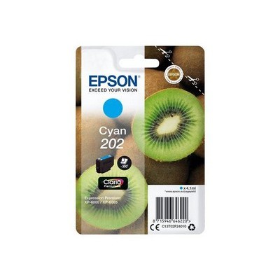Cartuccia Epson C13T02F24010 202 Kiwi originale CIANO da 4,1 ml. Compatibile con le seguenti stampanti: Epson EXPRESSION PREMIUM XP-6000, Epson EXPRESSION PREMIUM XP-6005, Epson EXPRESSION PREMIUM XP-6100, Epson EXPRESSION PREMIUM XP-6105