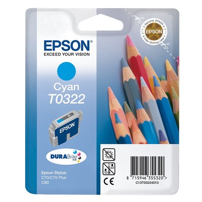 Etichette C13T03224010, Cartucce Epson, Cartuccia Epson C13T03224010 T0322 Crayons originale CIANO, cartuccia epson c13t03224010 t0322 crayons originale ciano da 420 pagine. compatibile con le seguenti stampanti: epson stylus c70, Epson STYLUS C70 PLUS, Epson STYLUS C80, Epson STYLUS C80 PLUS, Epson STYLUS C80N, Epson STYLUS C80WN, Epson STYLUS CX4500