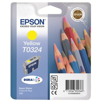 Cartuccia Epson C13T03244020 T0324 Crayons originale GIALLO da 420 pagine. Compatibile con le seguenti stampanti: Epson STYLUS C70, Epson STYLUS C80