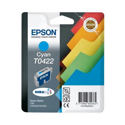 Cartuccia Epson C13T04224010 T0422 Divisori originale CIANO da 420 pagine. Compatibile con le seguenti stampanti: Epson STYLUS C82, Epson STYLUS CX5100, Epson STYLUS CX5200, Epson STYLUS CX5400