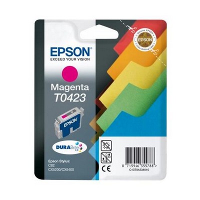Cartuccia Epson C13T04234020 T0423 Divisori originale MAGENTA da 420 pagine. Compatibile con le seguenti stampanti: Epson STYLUS C82, Epson STYLUS CX5200, Epson STYLUS CX5400