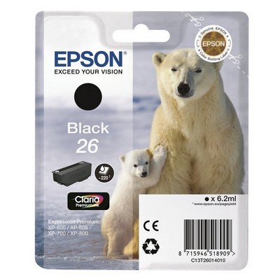 Etichette C13T26014010, Cartucce Epson, Cartuccia Epson C13T26014010 T2601 26 Orso Polare originale NERO, cartuccia epson c13t26014010 t2601 26 orso polare originale nero da 220 pagine. compatibile con le seguenti stampanti: epson expression premium xp-510, Epson EXPRESSION PREMIUM XP-520, Epson EXPRESSION PREMIUM XP-600, Epson EXPRESSION PREMIUM XP-605, Epson EXPRESSION PREMIUM XP-610, Epson EXPRESSION PREMIUM XP-615, Epson EXPRESSION PREMIUM XP-620, Epson EXPRESSION PREMIUM XP-625, Epson EXPRESSION PREMIUM XP-700, Epson EXPRESSION PREMIUM XP-710, Epson EXPRESSION PREMIUM XP-720, Epson EXPRESSION PREMIUM XP-800, Epson EXPRESSION PREMIUM XP-810, Epson EXPRESSION PREMIUM XP-820