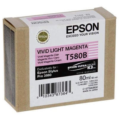 Cartuccia Epson C13T580B00 T580B originale MAGENTA CHIARO da 350 pagine. Compatibile con le seguenti stampanti: Epson STYLUS PRO 3880, Epson STYLUS PRO 3880 DESIGNER EDITION