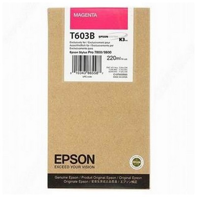 Cartuccia Epson C13T603B00 T603B originale MAGENTA da 220 ml. Compatibile con le seguenti stampanti: Epson STYLUS PRO 7800, Epson STYLUS PRO 7880, Epson STYLUS PRO 9880