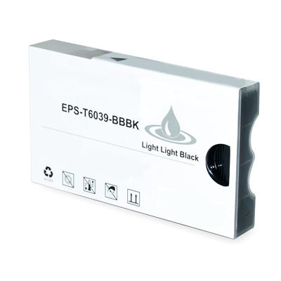 Etichette Cartucce Epson, Cartuccia Epson T6039 C13T603900 compatibile NERO CHIARO CHIARO, Cartuccia Epson T6039 C13T603900 compatibile NERO CHIARO CHIARO da 220 ml. Compatibile con le seguenti stampanti: Epson STYLUS PRO 7800, Epson STYLUS PRO 7880, Epson STYLUS PRO 9800, Epson STYLUS PRO 9880, T6039.C