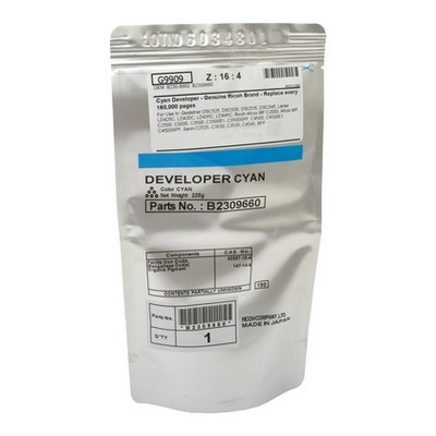Etichette B2309660.C, Developer Ricoh B2309660 D0899660 D1449660 compatibile CIANO, Developer Ricoh B2309660 D0899660 D1449660 compatibile CIANO. Compatibile con le seguenti stampanti: Ricoh AFICIO MP C3500, Ricoh AFICIO MP C3502, Ricoh AFICIO MP C4500, Ricoh AFICIO MP C4501, Ricoh AFICIO MP C4502, Ricoh AFICIO MP C5501, Ricoh AFICIO MP C5502, Toner Ricoh