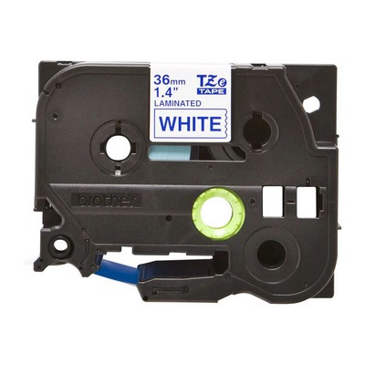 Nastro per etichettatrice Brother TZE-263 TZe TAPE Laminato da 36 mm (Rotolo 8 metri) compatibile BLU SU BIANCO da 8 metri. Compatibile con le seguenti stampanti: Brother PT-3600, Brother PT-9200DX, Brother PT-9200PC, Brother PT-9400, Brother PT-9500PC, Brother PT-9600, Brother PT-9700PC, Brother PT-9800PCN, Brother PT-D800W, Brother PT-P900W, Brother PT-P950NWB