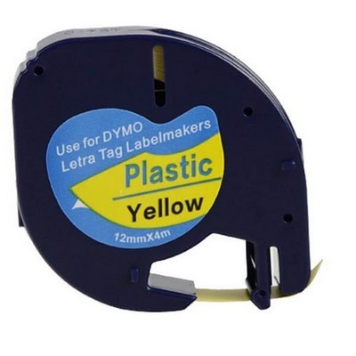 Nastro per etichettatrice Dymo S0721670 LT Plastic da 12 mm (Rotolo 4 metri) compatibile NERO SU GIALLO da 4 metri. Compatibile con le seguenti stampanti: Dymo LETRATAG 2000, Dymo LETRATAG LT100, Dymo LETRATAG LT100H, Dymo LETRATAG LT100T, Dymo LETRATAG QX50, Dymo LETRATAG XM, Dymo LETRATAG XR