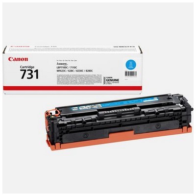 Toner Canon 6271B002 731 originale CIANO da 1500 pagine. Compatibile con le seguenti stampanti: Canon I-SENSYS LBP7100, Canon I-SENSYS LBP7110, Canon I-SENSYS MF623CN, Canon I-SENSYS MF628CW, Canon I-SENSYS MF8230, Canon I-SENSYS MF8280