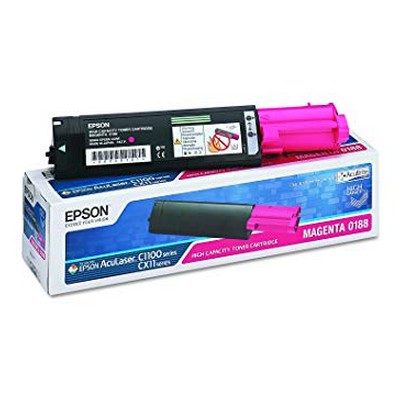 Toner Epson C13S050188 originale MAGENTA da 4000 pagine. Compatibile con le seguenti stampanti: Epson ACULASER C1100, Epson ACULASER C1100N, Epson ACULASER CX11N, Epson ACULASER CX11NF, Epson ACULASER CX11NFCT, Epson ACULASER CX11NFT