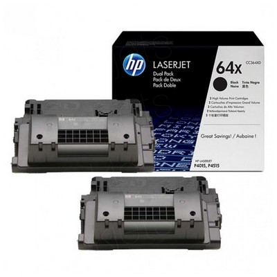 Toner Hp CC364XD Multipack 64X (Conf. da 2 pz.) originale NERO da 24000×2 pagine. Compatibile con le seguenti stampanti: Hp LASERJET 4015N, Hp LASERJET 4015TN, Hp LASERJET 4015X, Hp LASERJET P4015, Hp LASERJET P4515N