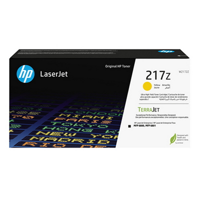 Toner Hp W2172Z 217Z originale GIALLO da 24000 pagine. Compatibile con le seguenti stampanti: Hp COLOR LASERJET ENTERPRISE FLOW MFP 6800DN, Hp COLOR LASERJET ENTERPRISE FLOW MFP 6800ZF, Hp COLOR LASERJET ENTERPRISE FLOW MFP 6800ZFSW