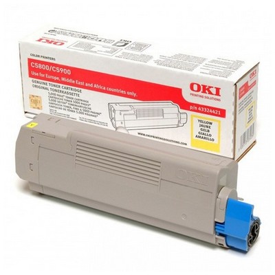 Toner Oki 43324421 originale GIALLO da 5000 pagine. Compatibile con le seguenti stampanti: Oki C5550, Oki C5800, Oki C5900