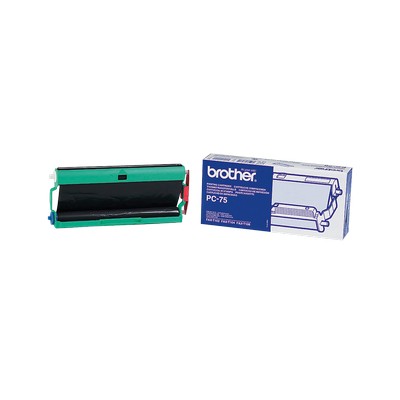 TTR Brother PC75 originale NERO da 144 pagine. Compatibile con le seguenti stampanti: Brother FAX-T104, Brother FAX-T106